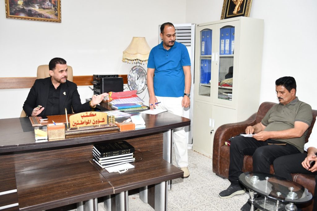 كتب/ إعلام الكلية:استقبل السيد عميد كلية التربية للعلوم الإنسانية في جامعة ديالى، الأستاذ الدكتور لؤي صيهود التميمي، اليوم الاحد الموافق ٥ تشرين الاول، عددًا من الطلبة والمواطنين في مكتب شؤون الطلبة، وذلك مع انطلاق العام الدراسي الجديد 2025–2026.وجاء هذا اللقاء في إطار حرص عمادة الكلية على الاستماع إلى طلبات ومقترحات الطلبة والمراجعين بصورة مباشرة، وتذليل العقبات التي قد تواجههم، بما يسهم في تهيئة بيئة جامعية تسودها روح التعاون والاحترام المتبادل.وأكد السيد العميد خلال حديثه: أن أبواب عمادة الكلية مفتوحة دائمًا أمام الطلبة والمواطنين، مشددًا على أهمية التواصل المباشر لتعزيز الثقة وترسيخ مبدأ خدمة الطالب أولًا، باعتباره المحور الأساس للعملية التعليمية.