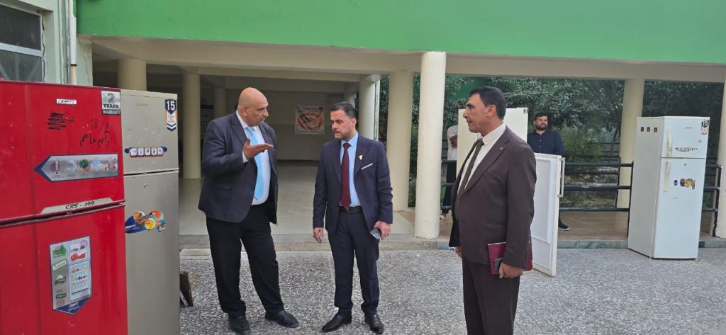 كتب/ إعلام الكلية:زار السيد عميد كلية التربية للعلوم الإنسانية بجامعة ديالى، الأستاذ الدكتور لؤي صيهود التميمي اليوم الاثنين الموافق ٣ تشرين الثاني ٢٠٢٥م، بناية الأقسام الداخلية، يرافقه معاونه لشؤون الطلبة الاستاذ الدكتور حامد حميد عطية، واطّلع خلال جولته على أوضاع الطلبة الساكنين فيها واحتياجاتهم الخدمية والمعيشية.والتقى السيد العميد بعدد من الطلبة، مستمعًا إلى أهم ملاحظاتهم ومقترحاتهم، مؤكّدًا حرص عمادة الكلية على تهيئة بيئة سكنية مناسبة تسهم في دعم مسيرتهم الدراسية وتوفير الأجواء الملائمة للتحصيل العلمي.وتأتي هذه الزيارة في إطار اهتمام الكلية برعاية طلبتها والوقوف على متطلباتهم بشكل مباشر، بما ينسجم مع أهداف التنمية المستدامة، ولا سيما الهدف الرابع المتعلق بضمان التعليم الجيد وتعزيز بيئة تعليمية داعمة وآمنة.