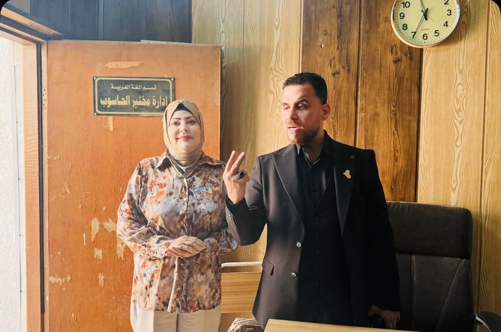 كتب/إعلام الكلية:تفقد السيد عميد كلية التربية للعلوم الإنسانية بجامعة ديالى، الأستاذ الدكتور لؤي صيهود التميمي، طلبة الدراسات العليا (الدكتوراه) في قسم اللغة العربية، للاطلاع على سير العملية التعليمية ومتابعة انتظام المحاضرات العلمية.استمع السيد العميد إلى ملاحظات وآراء الطلبة حول البرامج الدراسية ووسائل الدعم الأكاديمي، مؤكداً حرص الكلية على تهيئة بيئة علمية محفزة للبحث والإبداع.كما أثنى على جهود الأساتذة في تقديم المقررات العلمية وفق أحدث المناهج البحثية، داعياً إلى استمرار التواصل العلمي البنّاء بين الطلبة والمشرفين لضمان جودة مخرجات البحث العلمي.يأتي هذا النشاط في إطار تحقيق الهدف الرابع من أهداف التنمية المستدامة (التعليم الجيد)، الذي يدعو إلى تعزيز فرص التعليم العالي الجيد والمنصف والشامل للجميع.