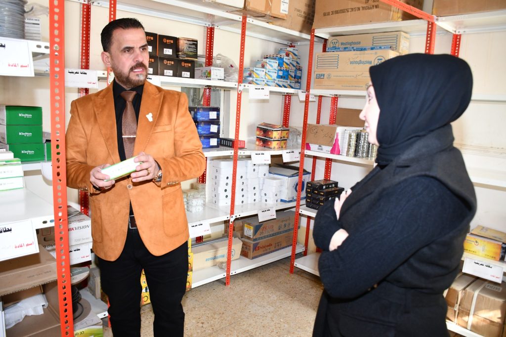 السيد عميد كلية التربية للعلوم الإنسانية يتفقد شعبة المخازن في الكلية