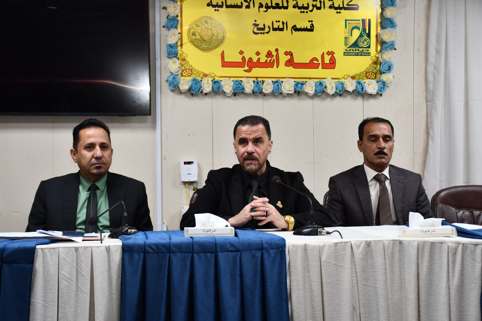 كتب/إعلام الكلية:حضر السيد عميد كلية التربية للعلوم الإنسانية في جامعة ديالى الأستاذ الدكتور لؤي صيهود التميمي اليوم الثلاثاء الموافق 10اذار 2026م اجتماعاً لقسم التاريخ، بحضور رئيس القسم وعدد من تدريسيي القسم.وجرى خلال الاجتماع مناقشة عدد من القضايا العلمية والإدارية المتعلقة بسير العملية التعليمية، فضلاً عن بحث سبل تطوير الأداء الأكاديمي وتعزيز مستوى الطلبة في الدراسات الأولية والعليا.وأكد السيد العميد خلال الاجتماع أهمية العمل بروح الفريق الواحد والارتقاء بالمستوى العلمي والبحثي، بما يسهم في تحقيق الأهداف الأكاديمية للكلية والجامعة.