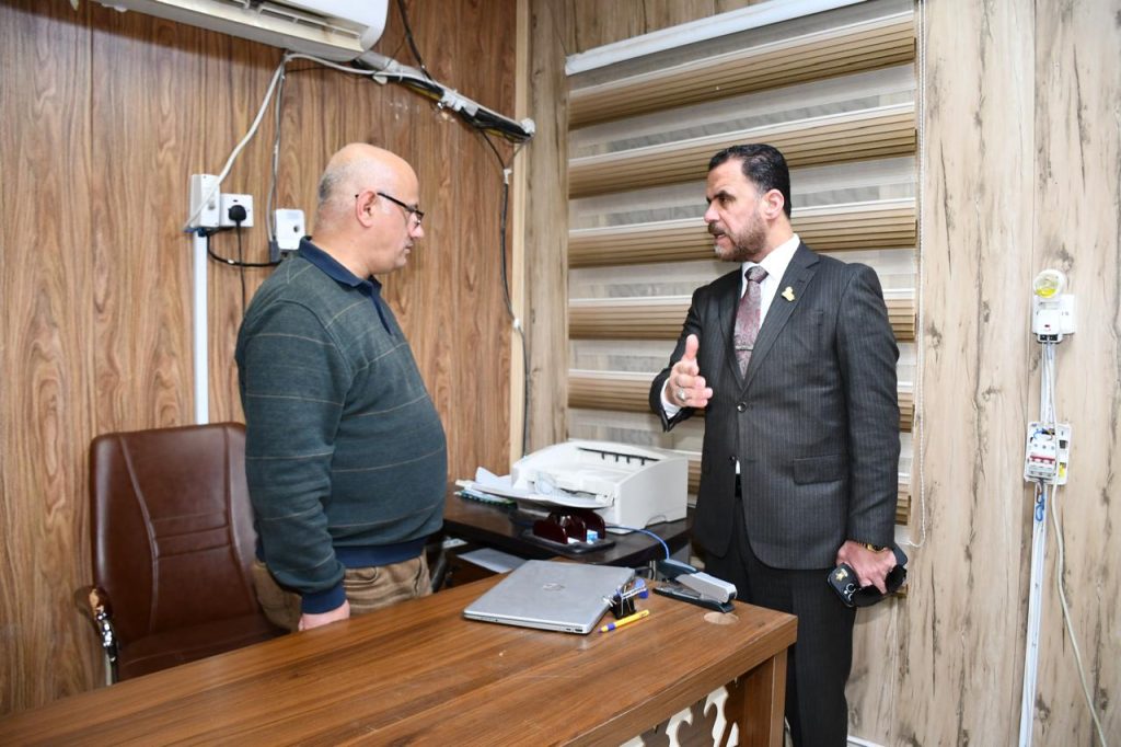 كتب/اعلام الكلية:تفقد السيد عميد كلية التربية للعلوم الإنسانية في جامعة ديالى الأستاذ الدكتور لؤي صيهود التميمي، اليوم الثلاثاء الموافق 17 آذار 2026م، شعبة الدراسات العليا في الكلية للاطلاع على سير العمل الإداري والخدمات المقدمة لطلبة الدراسات العليا.وخلال جولته، اطلع سيادته على آلية إنجاز معاملات الطلبة وتنظيم الملفات والإجراءات المتبعة في متابعة شؤون طلبة الماجستير والدكتوراه، مؤكداً أهمية تبسيط الإجراءات الإدارية وتقديم أفضل الخدمات بما يسهم في دعم المسيرة العلمية والبحثية في الكلية.كما أشاد السيد العميد بجهود منتسبي الشعبة وحرصهم على إنجاز الأعمال الموكلة إليهم بدقة، موجهاً بضرورة الاستمرار في تطوير آليات العمل بما ينسجم مع متطلبات العمل الأكاديمي والإداري.