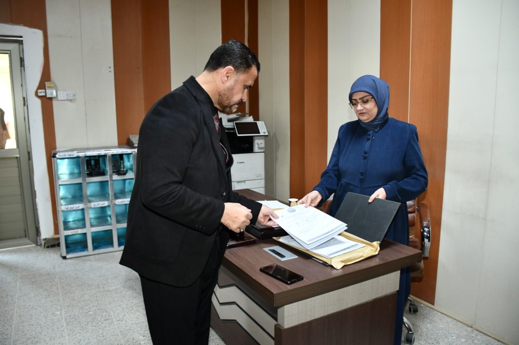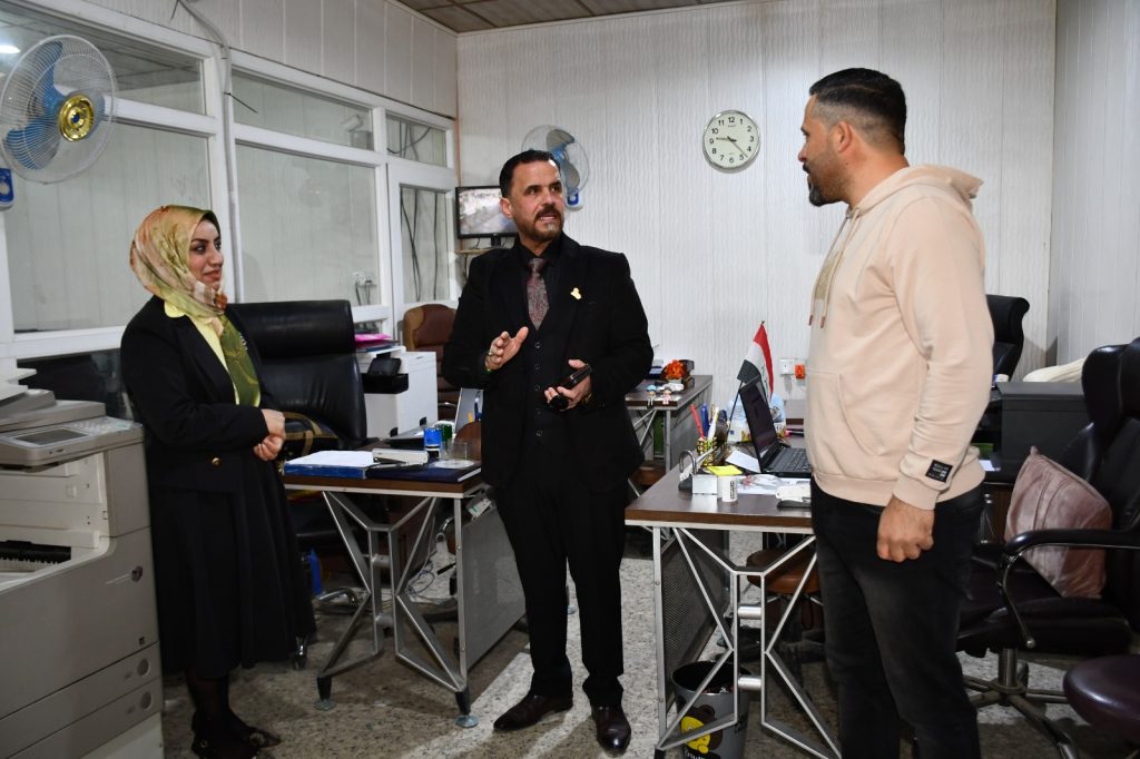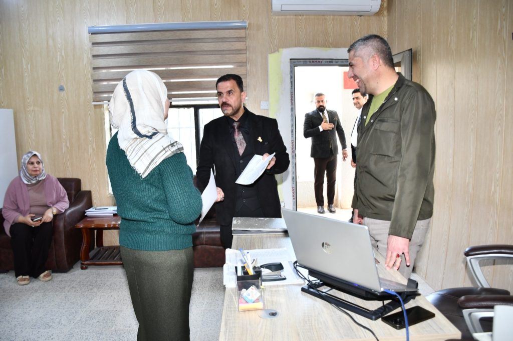 كتب/ إعلام الكلية:أجرى السيد عميد كلية التربية للعلوم الإنسانية في جامعة ديالى، الأستاذ الدكتور لؤي صيهود التميمي، اليوم الثلاثاء الموافق ٣١ آذار ٢٠٢٦م، جولة تفقدية شملت عددًا من الشعب والوحدات الإدارية في الكلية، للاطلاع على سير العمل والوقوف على الواقع العملي فيها.واطلع السيد العميد خلال جولته على طبيعة الأداء الإداري ومستوى تقديم الخدمات، مؤكداً أهمية الالتزام بالانضباط الوظيفي وتبسيط الإجراءات بما يسهم في تعزيز كفاءة العمل المؤسسي وتقديم أفضل الخدمات للطلبة والتدريسيين, مشدداً على ضرورة تذليل المعوقات التي قد تواجه سير العمل، والعمل بروح الفريق الواحد لتحقيق أهداف الكلية والارتقاء بمستواها الأكاديمي والإداري.وتأتي هذه الجولة في إطار حرص عمادة الكلية على المتابعة الميدانية المستمرة وتحسين جودة الأداء في مختلف مفاصل الكلية, كما يُسهم هذا النشاط في تحقيق هدف التنمية المستدامة السادس عشر: “السلام والعدل والمؤسسات القوية”، من خلال تعزيز كفاءة المؤسسات التعليمية ودعم الشفافية والإدارة الرشيدة.