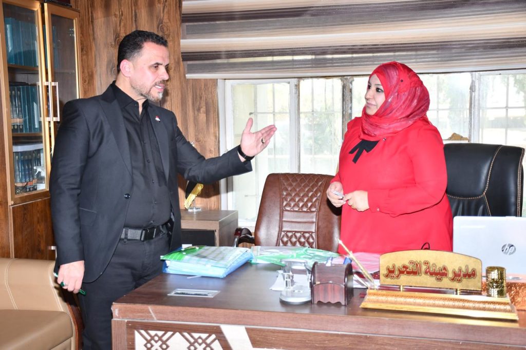 كتب/اعلام الكلية:تفقد السيد عميد كلية التربية للعلوم الانسانية في جامعة ديالى الاستاذ الدكتور لؤي صيهود التميمي اليوم الاثنين الموافق 27تشرين الاول 2025م شعب ووحدات الكلية في الدراسة المسائية .وجه السيد العميد خلال جولته برفقة معاون العميد للشؤون الادارية والمالية الاستاذ المساعد الدكتور طلال منيهل كريم, منتسبي الشعب والوحدات الى بذل اقصى ما لديهم من جهود استثنائية في اكمال الاعمال والمهام المناطة اليهم في سبيل جعل الكلية في المراتب الاولى بين الكليات .من جانبهم عبرَ الموظفون عن فاقهم شكرهم وامتنانهم للسيد العميد للزيارات الميدانية لهم وتفقد اعمالهم وتلبية طلباتهم وفق الضوابط والتعليمات الوزارية النافذ .