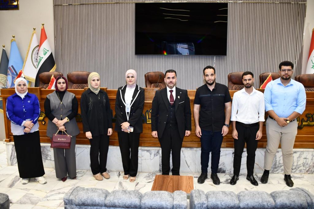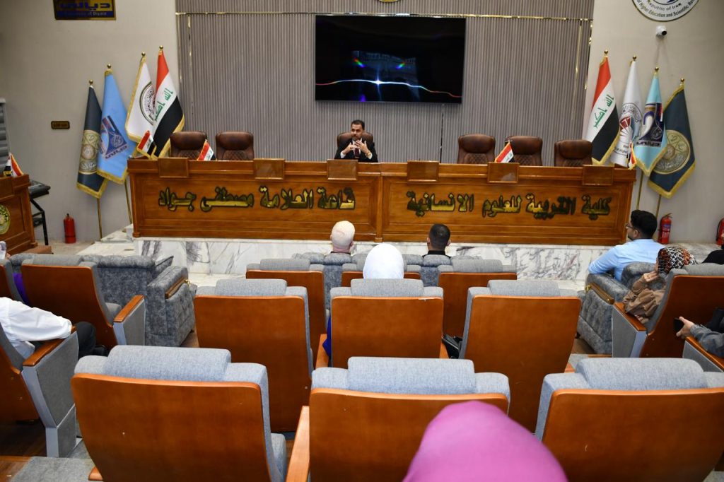 كتب/إعلام الكلية :التقى السيد عميد كلية التربية للعلوم الإنسانية في جامعة ديالى، الأستاذ الدكتور لؤي صيهود التميمي، طلبة الدراسات العليا في قسمي اللغة الإنكليزية والجغرافية، وذلك على قاعة العلامة مصطفى جواد في مبنى الكلية، ضمن استراتيجية الكلية في تعزيز التواصل المباشر مع الطلبة ومتابعة مسيرتهم الأكاديمية والبحثية.أكد السيد العميد على أهمية دمج مفاهيم التنمية المستدامة في رسائل الماجستير وأطاريح الدكتوراه، موضحاً أن البحث العلمي يُعد محركاً أساسياً لتحقيق التنمية الشاملة، وأن كلية التربية للعلوم الإنسانية تسعى إلى توجيه الجهود العلمية نحو معالجة القضايا المجتمعية ودعم الأهداف الوطنية للتنمية.وفي ختام اللقاء، استمع السيد العميد إلى مداخلات الطلبة ومقترحاتهم، موجهاً بتوفير جميع التسهيلات اللازمة لتهيئة بيئة أكاديمية محفزة تساعدهم على إتمام بحوثهم بأعلى المستويات العلمية، ومؤكداً دعم العمادة المستمر لكل المبادرات التي تسهم في رفع جودة الإنتاج المعرفي وتحقيق التميز البحثي.ويأتي هذا اللقاء في إطار تحقيق الهدف الرابع من أهداف التنمية المستدامة (التعليم الجيد) والهدف السادس عشر (السلام والعدل والمؤسسات القوية)، من خلال تعزيز البحث العلمي بوصفه ركيزة للنهوض الأكاديمي ودعم المؤسسات المعرفية.