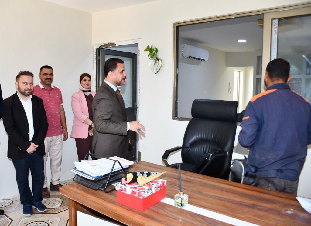 كتب/ إعلام الكلية:أجرى السيد عميد كلية التربية للعلوم الإنسانية بجامعة الأستاذ الدكتور لؤي صيهود التميمي, زيارة لتفقد أعمال التأهيل والصيانة الجارية في شعبة ضمان الجودة وتقويم الأداء، للاطلاع على سير العمل ومدى الالتزام بالمواصفات الفنية المعتمدة.أكد السيد العميد خلال الجولة على أهمية تطوير البنى التحتية للشعب والوحدات الإدارية، بما يسهم في تعزيز جودة الأداء المؤسسي والارتقاء بمستوى الخدمات المقدمة، مشدداً على ضرورة إنجاز الأعمال ضمن الجداول الزمنية المحددة وبما ينسجم مع معايير الجودة الشاملة.كما اطلع السيد العميد على الاحتياجات الفنية واللوجستية للشعبة، موجهاً بتذليل المعوقات كافة لضمان توفير بيئة عمل ملائمة تسهم في تحقيق أهداف الجودة والاعتماد الأكاديمي.ويسهم هذا النشاط في تحقيق الهدف (4) من أهداف التنمية المستدامة: التعليم الجيد، من خلال دعم جودة المؤسسات التعليمية وتطوير بيئتها الإدارية.
