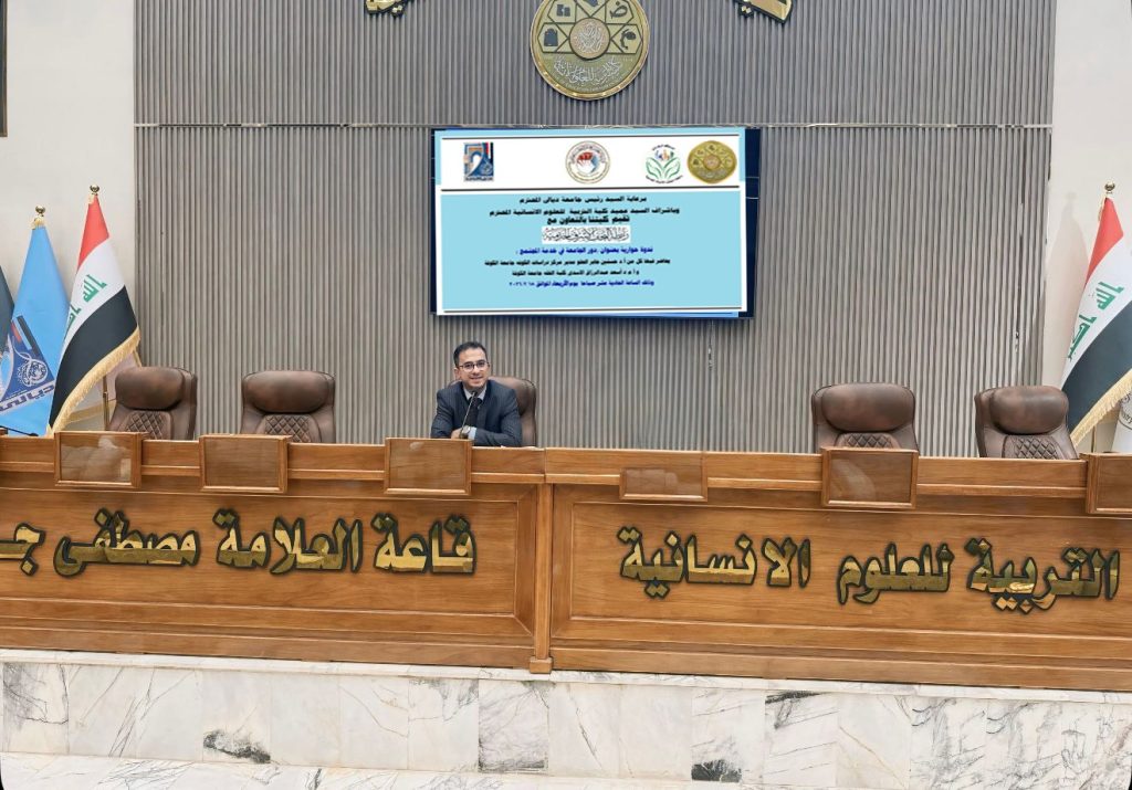 كتب/ إعلام الكلية:برعاية السيد رئيس الجامعة الأستاذ الدكتور تحسين حسين مبارك، وبإشراف السيد عميد كلية التربية للعلوم الإنسانية الأستاذ الدكتور لؤي صيهود التميمي، عقدت شعبة التعليم المستمر في الكلية، بالتعاون مع رابطة النجف الأشرف الخدمية، ندوة حوارية بعنوان (دور الجامعة في خدمة المجتمع)، بحضور عدد من التدريسيين والطلبة والمهتمين بالشأن الأكاديمي والمجتمعي.وتناولت الندوة التي ناقش محاورها الأستاذ الدكتور حسنين جابر الحلو، مدير مركز دراسات الكوفة في جامعة الكوفة، مسؤولية المؤسسة الأكاديمية في تعزيز التنمية المجتمعية وبناء جسور التواصل الفاعل مع مؤسسات المجتمع المدني، فضلاً عن ترسيخ ثقافة العمل التطوعي والمبادرات المجتمعية بين الطلبة. كما تم التأكيد على أن الجامعة لم تعد مؤسسة تعليمية فحسب، بل أصبحت شريكاً أساسياً في تشخيص المشكلات المجتمعية واقتراح الحلول العلمية الرصينة لها.وتوسعت محاور الندوة في بيان آليات توجيه البحث العلمي لمعالجة القضايا الواقعية التي تواجه المجتمع، وتفعيل البرامج التدريبية والاستشارية التي تقدمها الكليات لمؤسسات الدولة، إلى جانب أهمية إشراك الطلبة في الأنشطة الميدانية والتوعوية التي تنمّي مهاراتهم وتعزز روح المواطنة والمسؤولية لديهم. كما شدد المتحدثون على ضرورة تكامل الأدوار بين التعليم والبحث العلمي وخدمة المجتمع لضمان تحقيق أثر تنموي مستدام.وتأتي هذه الندوة ضمن أنشطة شعبة التعليم المستمر الهادفة إلى دعم أهداف التنمية المستدامة، ولاسيما الهدف السابع عشر (عقد الشراكات لتحقيق الأهداف)، من خلال توسيع آفاق التعاون المؤسسي بما يسهم في خدمة المجتمع وتحقيق التنمية الشاملة.وفي ختام الندوة كرم السيد عميد الكلية الاستاذ الدكتور لؤي صيهود التميمي, المحاضر بكتاب شكر وتقدير ودرع الكلية تثمينًا لجهوده في القاء الندوة متمنيًا له دوام التوفيق والسداد.