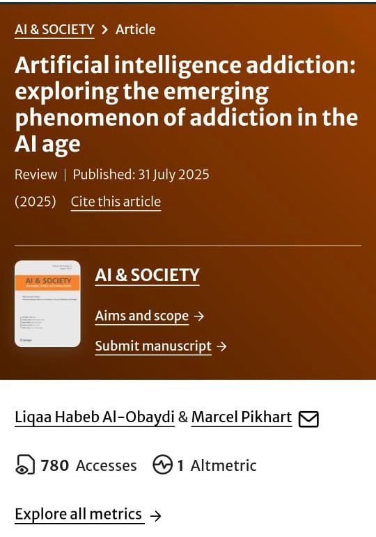 كتب/ إعلام الكلية:نشرت التدريسية من قسم اللغة الإنكليزية في كلية التربية للعلوم الإنسانية بجامعة ديالى الأستاذ الدكتورة لقاء حبيب العبيدي، بحثاً علمياً بعنوان “إدمان الذكاء الاصطناعي” في مجلة AI & Society الصادرة عن دار النشر العالمية Springer Nature، والمصنفة ضمن مجلات الربع الأول (Q1) في لندن / المملكة المتحدة، وبمعامل تأثير قدره 4.9.تناول البحث، الذي أُنجز بالتعاون مع البروفسور مارسل بكهارت من جامعة هرادك كلاروف في جمهورية التشيك, والذي عُدّ مراجعة شاملة (Scoping Review)، ظاهرة الإدمان على تطبيقات الذكاء الاصطناعي وتأثيراتها على المستخدمين، مستنداً إلى تحليل 14 دراسة عالمية صدرت خلال المدة (2020–2025)، وفق منهجية PRISMA لتحليل الأطر النظرية والعينات وطرق البحث والنتائج المتعلقة بإدمان تقنيات الذكاء الاصطناعي, كما بين العوامل التي تُسهم في نشوء إدمان الذكاء الاصطناعي، ومنها الرغبة الفطرية في تحقيق الكفاءة والارتباط العاطفي مع الأنظمة الذكية، فضلاً عن توضيح أثر الاعتماد المفرط على الدردشات التوليدية (Generative Chatbots) في سلوكيات الطلاب والمعلمين والمجتمعات المختلفة.واختتمت الدراسة بتقديم توصيات تربوية وأخلاقية تؤكد أهمية التعاون بين الباحثين والمشرّعين والمعلمين ومطوري التكنولوجيا، من أجل تطوير أنظمة ذكاء اصطناعي تراعي رفاهية المستخدمين وتضع القيم الإنسانية في المقام الأول.ويأتي هذا النشاط العلمي في إطار تحقيق أهداف التنمية المستدامة السبعة عشر التي أقرتها الأمم المتحدة، ولا سيما الهدف الرابع المتمثل في التعليم الجيد والهدف التاسع الخاص بـ الابتكار والبنية التحتية، من خلال الإسهام في بناء معرفة علمية تعزز الاستخدام الأخلاقي والمسؤول لتقنيات الذكاء الاصطناعي في التعليم والمجتمع.