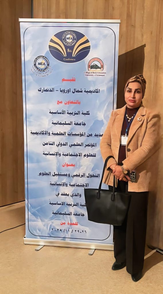 كتب/اعلام الكلية:شارك التدريسيتان من قسم اللغة الانكليزية في كلية التربية للعلوم الانسانية بجامعة ديالى الاستاذ المساعد مي تحسين حميد، والمدرس المساعد هند تحسين حميد في المؤتمر العلمي الدولي الثامن للعلوم الانسانية والاجتماعية الذي اقامتهُ اكاديمية شمال اوروبا للعلوم والبحث العلمي -الدنمارك والذي عقد في كلية التربية الاساسية بجامعة السليمانية للمدة من 29/26-11-2025 . تناول البحث الموسوم”النية التداولية والتفاوض على الهوية في الخطاب الانكليزي عبر وسائط التواصل الاجتماعي:تحليل خطابي متعدد الوسائط” الى فحص كيف تتحقق النية التداولية وكيف يتم التفاوض على الهوية في الخطاب الانكليزي على السوشال ميديا عبر منصتي تويتر/اكس و انستغرام من خلال تحليل الموارد المتعددة الوسائط (نص, ايموجي،صور،هاشتاغ، تخطيط بصري).ومن الجدير بالذكر ان! المؤتمر شارك فيه العديد من الباحثين من مختلف الجامعات والمراكز البحثية المتنوعة العراقية ، والعربية كتونس والاردن والمغرب وفي مختلف مجالات العلوم الانسانية والاجتماعية.وحققت هذه المشاركة في المؤتمر احد أهداف التنمية المستدامة، ولا سيما الهدف الرابع (التعليم الجيد) وكذلك الهدف السابع عشر (عقد الشراكات لتحقيق الأهداف)، وذلك عبر توسيع مجالات التعاون الدولي، والارتقاء بجودة البحث العلمي، وتطوير قدرات التدريسيين في التخصصات المتقدمة.