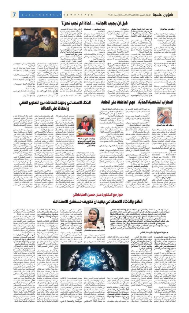 نشر التدريسي من قسم الجغرافية في كلية التربية للعلوم الإنسانية بجامعة ديالى، المدرس المساعد حيدر عبدالسلام محمد، مقالاً علمياً بعنوان “الذكاء الاصطناعي ومهنة المحاماة بين التطوير التقني والحفاظ على العدالة”، وذلك في صحيفة صباح كربلاء بالعدد (377) الصادر بتاريخ 1/4/2026، التابعة إلى شبكة الإعلام العراقي.