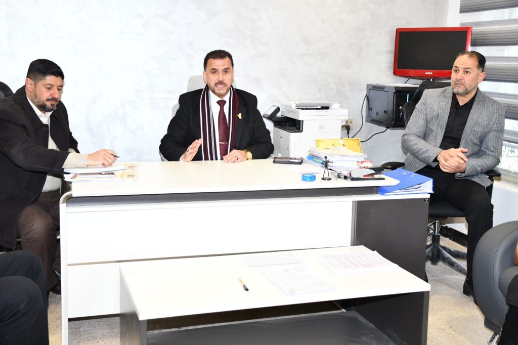 كتب/ إعلام الكلية:عقد السيد عميد كلية التربية للعلوم الإنسانية في جامعة ديالى، الأستاذ الدكتور لؤي صيهود التميمي، اجتماعاً مع منتسبي شعبة المالية في الكلية، لمناقشة استحقاقات منتسبي الكلية من التدريسيين والموظفين، والوقوف على آليات تنظيمها وإنجازها وفق الضوابط والتعليمات المعتمدة.وجرى خلال الاجتماع استعراض أبرز الملفات المالية المتعلقة بحقوق المنتسبين، والتأكيد على أهمية الدقة والشفافية في إنجاز المعاملات، بما يضمن العدالة في توزيع الاستحقاقات وسرعة إنجازها، وبما ينسجم مع القوانين النافذة.أكد السيد العميد حرص عمادة الكلية على متابعة الجوانب المالية والإدارية كافة، لما لها من دور مباشر في توفير بيئة عمل مستقرة ومحفزة للتدريسيين والموظفين، مشيداً بجهود منتسبي شعبة المالية في أداء مهامهم.ويأتي هذا الاجتماع في إطار تحقيق هدف التنمية المستدامة الثامن (العمل اللائق ونمو الاقتصاد)، من خلال ضمان الحقوق الوظيفية، وتعزيز ممارسات الإدارة الرشيدة، ودعم بيئة العمل العادلة داخل المؤسسات التعليمية.