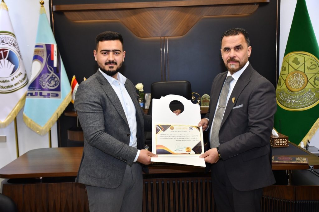 كتب/ أعلام الكلية :حققت كلية التربية للعلوم الإنسانية في جامعة ديالى إنجازاً علمياً مميزاً بحصولها على المركز الأول في المسابقة المعرفية (بنك المعلومات) التي نظمها قسم النشاطات الطلابية في رئاسة جامعة ديالى ، بمشاركة عدد من كليات الجامعة.وجاء هذا الفوز بعد منافسة علمية وثقافية اتسمت بروح التحدي والتفاعل المعرفي بين الفرق المشاركة، حيث أظهر طلبة الكلية مستوى عالياً من المعلومات العامة وسرعة البديهة والعمل بروح الفريق الواحد، مما أهلهم لتصدر المراكز الأولى عن جدارة واستحقاق.وبهذه المناسبة، بارك السيد عميد الكلية هذا الإنجاز لطلبة الكلية، مثمناً جهودهم المتميزة التي تعكس حرصهم على التفوق العلمي والثقافي، كما أشاد بدور شعبة النشاطات الطلابية في دعم الطاقات الطلابية وتنمية مهاراتهم المعرفية.وعلى هامش هذا الإنجاز، كرّم السيد عميد كلية التربية للعلوم الإنسانية الطلبة الفائزين بمنحهم شهادات تقديرية تثميناً لجهودهم المتميزة، مشيداً بعطائهم العلمي وحرصهم على تمثيل الكلية بالشكل الذي يليق بمكانتها الأكاديمية، مؤكداً في الوقت ذاته دعم عمادة الكلية المستمر للأنشطة التي تنمّي القدرات المعرفية والثقافية لدى الطلبة.