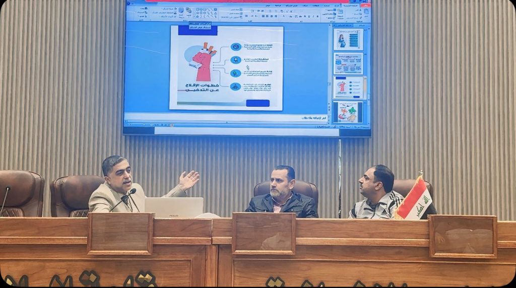 كتب/ إعلام الكلية:عقدت شعبة التعليم المستمر في كلية التربية للعلوم الإنسانية بجامعة ديالى، بالتعاون مع شعبة السلامة والأمن الكيميائي والبايلوجي والإشعاعي في الجامعة، ندوة علمية بعنوان (مضار التدخين والأمراض غير الانتقالية)، وذلك على قاعة العلامة مصطفى جواد.وتضمنت الندوة التي ناقش محاورها كل من الأستاذ المساعد الدكتور نمير فاضل غائب، والمدرس الدكتور سعد أحمد علي، والمدرس المساعد محمد قاسم صالح، محورين رئيسين، ركّز المحور الأول على مضار التدخين، حيث تم استعراض الآثار الصحية والنفسية والاجتماعية للتدخين، ودوره في زيادة خطر الإصابة بالأمراض المزمنة، فضلًا عن تأثيراته السلبية على الصحة العامة والبيئة الجامعية.فيما خُصِّص المحور الثاني للحديث عن الأمراض غير الانتقالية، إذ ناقش المحاضرون أبرز أنواع هذه الأمراض وأسبابها، وسبل الوقاية منها من خلال اعتماد أنماط حياة صحية، مؤكدين أهمية التوعية المجتمعية للحد من انتشارها.وشهدت الندوة حضورًا وتفاعلًا من التدريسيين والطلبة، في إطار حرص الكلية والجامعة على تنظيم الأنشطة العلمية التي تسهم في بناء مجتمع جامعي واعٍ وصحي، كما تسهم في تعزيز الوعي الصحي لدى الطلبة، وتدعم تحقيق هدف التنمية المستدامة الثالث (الصحة الجيدة والرفاه).وفي ختام الندوة، كرّم السيد عميد كلية التربية للعلوم الإنسانية المشاركين في تقديم محاور الندوة، من خلال منحهم شهادات تقديرية تثمينًا لجهودهم العلمية ومساهمتهم الفاعلة في إنجاح الندوة، ودورهم في نشر الوعي الصحي بين طلبة الجامعة.