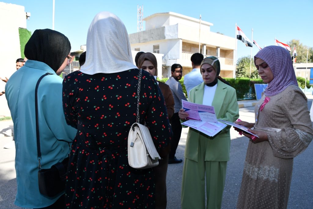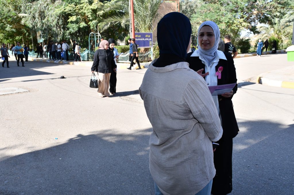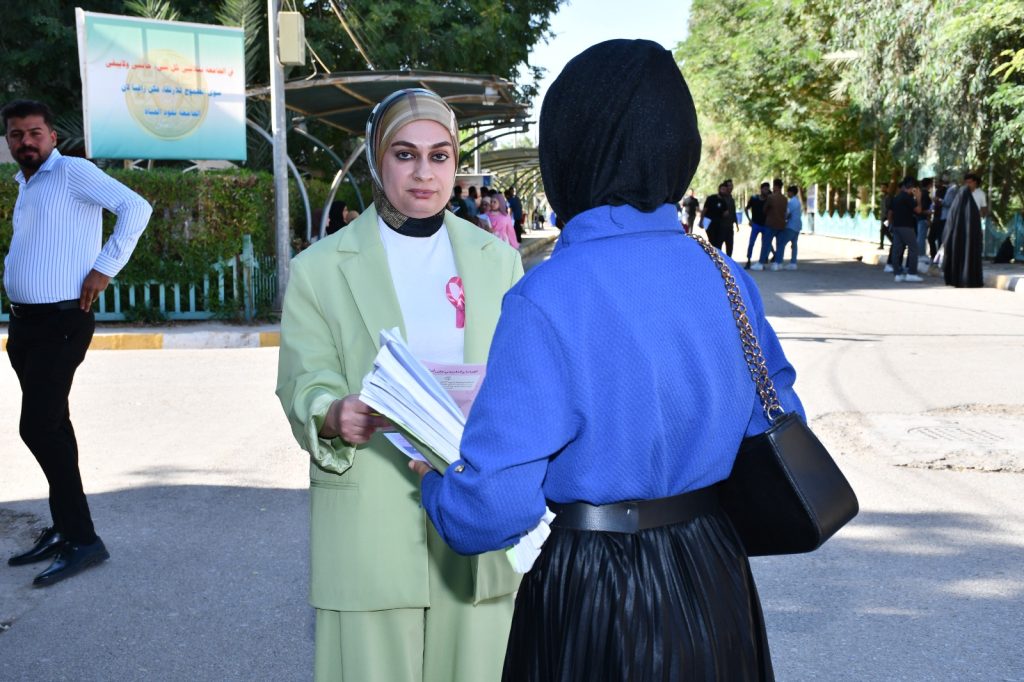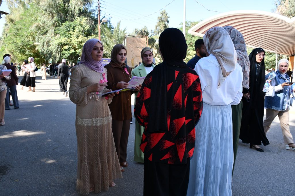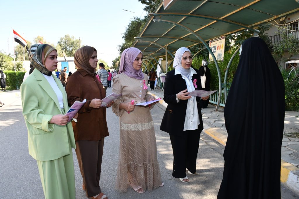 كتب/ إعلام الكلية:نظّمت شعبة الدراسات العليا بالتعاون مع شعبة النشاطات الطلابية في كلية التربية للعلوم الإنسانية بجامعة ديالى حملة توعوية بعنوان (من قلب الجامعة … نزرع الوعي والأمل) و (قوتك في وعيك … ووعيك في فحصك)، وذلك في إطار تعزيز الوعي الصحي لدى النساء وتشجيعهن على إجراء الفحص المبكر لمرض سرطان الثدي، بوصفه الوسيلة الأهم للوقاية وتقليل نسب الإصابة بهذا المرض.وهدفت الحملة التي اشرف عليها كل من المدرس المساعد ياسمين حافظ علي، وبمشاركة السادة التدريسيين: الأستاذ أنوار فاروق شاكر، والمدرس مروج هاشم كامل، والمدرس المساعد إسراء عبد الخالق جاسم، والمدرس المساعد ورود جاسم مهدي، والمهندس أفراح غالب عريبي، إلى نشر الوعي الصحي بأهمية الكشف المبكر ودوره في تعزيز فرص الشفاء وإنقاذ الأرواح. سلطت الحملة الضوء على مجموعة من الممارسات الوقائية التي تشمل: الحصول على قسط كافٍ من النوم لتعزيز تجدد الخلايا وتنظيم الهرمونات، وممارسة النشاط البدني المنتظم لدعم مناعة الجسم، واتباع نظام غذائي متوازن يعتمد على الأطعمة الطبيعية والمغذية والابتعاد عن الأغذية المصنعة والدهون الضارة.وتأتي هذه الحملة انسجاماً مع الهدف الثالث من أهداف التنمية المستدامة (الصحة الجيدة والرفاه) الذي يدعو إلى ضمان حياة صحية وتعزيز الرفاه للجميع، من خلال الحد من الأمراض غير السارية وزيادة الوعي الصحي والوقاية المجتمعية.