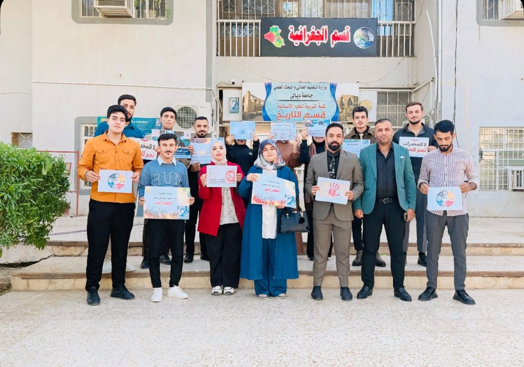 كتب/ إعلام الكلية:ضمن فعاليات الأسبوع العراقي لمكافحة المخدرات، نظّم قسم الجغرافية في كلية التربية للعلوم الإنسانية بجامعة ديالى، وبالتعاون مع شعبة النشاطات الطلابية، حملة توعوية موسعة بعنوان (المخدرات آفة المجتمع فاجتنبوها). هدفت الحملة التي أشرف عليها كل من الاستاذ الدكتور عبد الأمير عبد الله، والأستاذ المساعد الدكتورة ذكرى عادل محمود، والمدرس سهى سالم علي، والمدرس المساعد حيدر عبد السلام، والمدرس المساعد نور حسن علي، وبمشاركة عدد من طلبة القسم في توزيع المطبوعات والملصقات التوعوية داخل الكلية، الى نشر الوعي بين طلبة الجامعة حول مخاطر انتشار المخدرات وتأثيراتها السلبية على الفرد والمجتمع.وتضمنت الحملة تقديم إرشادات وتوجيهات تثقيفية حول الأضرار البدنية والنفسية لتعاطي المخدرات، فضلًا عن آثارها الاجتماعية الخطيرة التي تهدد استقرار الأسرة والمجتمع. واشتملت الحملة على فعاليات ميدانية وجولات داخل الحرم الجامعي للتواصل المباشر مع الطلبة وتعزيز ثقافة الوقاية.وتأتي هذه الحملة في إطار دعم الهدف الثالث من أهداف التنمية المستدامة (الصحة الجيدة والرفاه)، من خلال تعزيز الوعي الصحي والوقاية من المخاطر السلوكية، وبناء مجتمع جامعي واعٍ وقادر على مواجهة التحديات المرتبطة بآفة المخدرات.