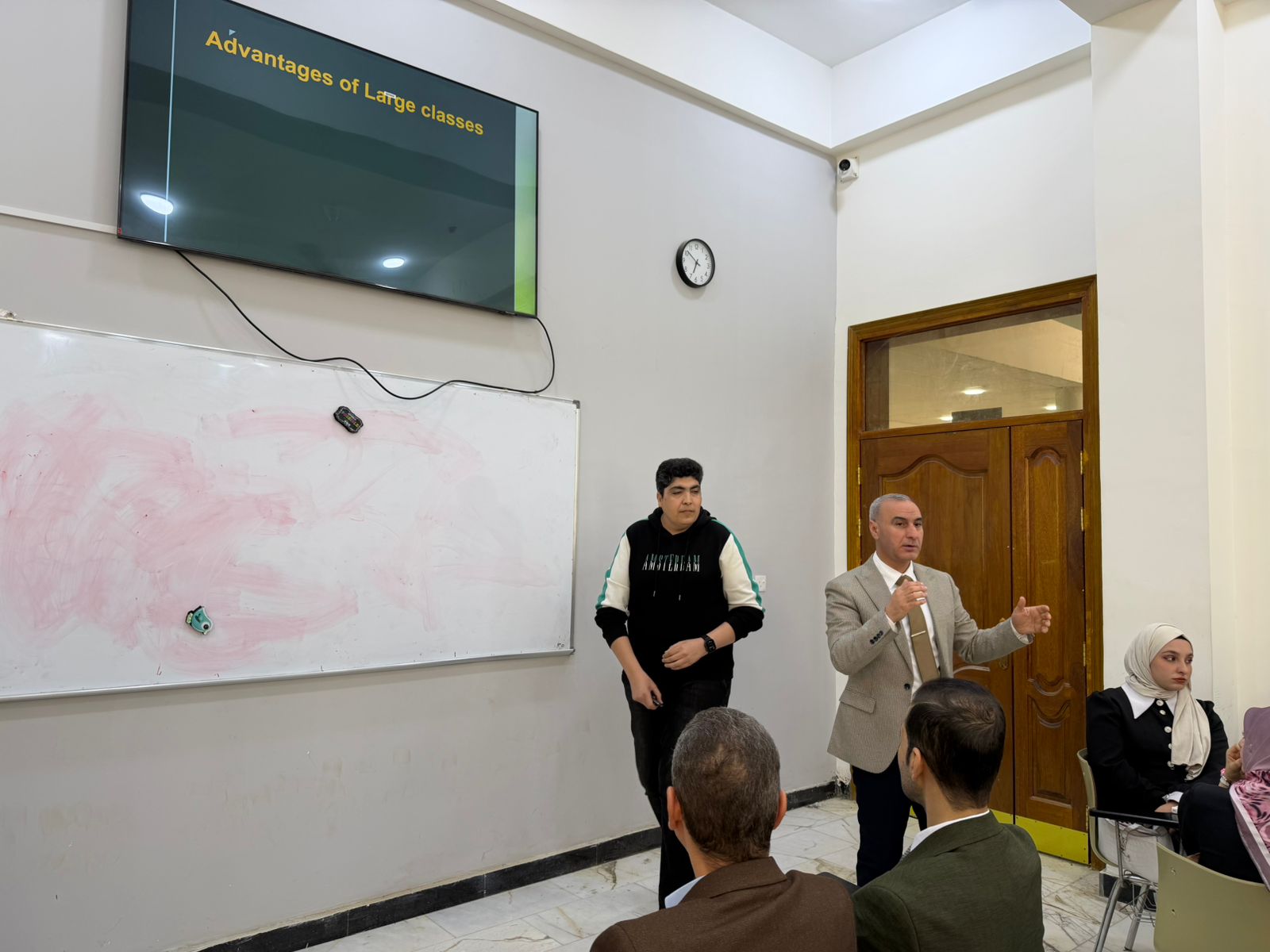 كتب/ إعلام الكلية:نظّم قسم اللغة الانكليزية في كلية التربية للعلوم الإنسانية بجامعة ديالى، بالتعاون مع مديرية تربية ديالى، ورشة عمل بعنوان “تدريس الصفوف الكبيرة” قدّمها المدرس الدكتور عمر علي حسين، بمشاركة عدد من التدريسيين والملاكات التربوية، وذلك في إطار تعزيز التعاون الأكاديمي وتطوير المهارات التدريسية.وتناولت الورشة جملة من الأهداف تمثلت في إدارة وقت الحصة الدراسية ومشاركة الطلبة بفاعلية، وضمان فرص تعلّم متكافئة لجميع الطلبة، والحفاظ على الانضباط والتفاعل الإيجابي داخل الصف، فضلاً عن تكييف طرائق التدريس بما يراعي الفروق الفردية وتطوير أساليب التقويم والتغذية الراجعة.وبيّن المحاضر أن تدريس الصفوف الكبيرة يمثل تحدياً وفرصة في آنٍ واحد، إذ يواجه المعلّم صعوبات تتعلق بقلة المتابعة الفردية وكثرة أعباء التقويم، إلا أن التخطيط المنظم، واعتماد التعلّم التعاوني، والعمل ضمن مجموعات صغيرة، وتوظيف التقنيات التعليمية، تسهم جميعها في تحويل الصفوف الكبيرة إلى بيئات تعلّم نشطة وفاعلة.واختُتمت الورشة بجملة من التوصيات، أبرزها تقسيم الطلبة إلى مجموعات عمل صغيرة، واعتماد استراتيجيات التعلّم التعاوني، واستخدام التقويم الذاتي وتقويم الأقران، وتوظيف المنصات الرقمية في المتابعة والواجبات، وتنويع الأنشطة التعليمية، بما ينسجم مع تحقيق الهدف الرابع من أهداف التنمية المستدامة (التعليم الجيد) وتعزيز جودة التعليم ومخرجاته.