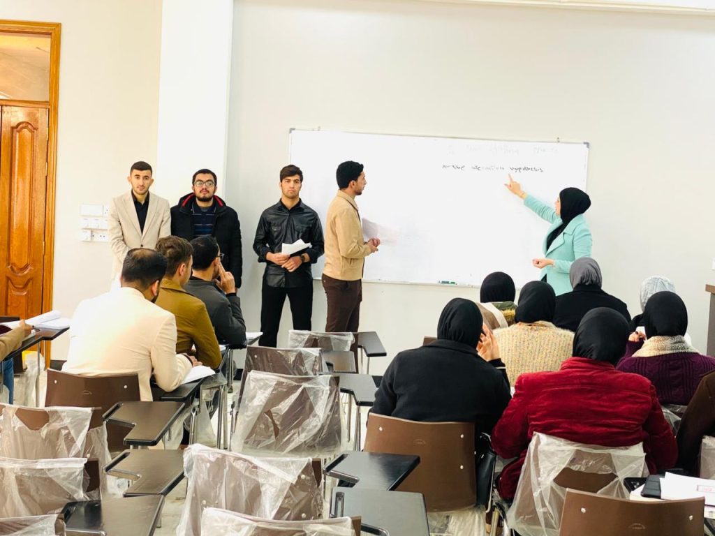 كتب/إعلام الكلية :أقام قسم اللغة الانكليزية في كلية التربية للعلوم الإنسانية بجامعة ديالى نشاطًا لا صفيًا بعنوان (كيفية تدريس مهارتي الاستماع والتحدث للمتعلمين باللغة الإنجليزية) لطلبة المرحلة الثانية, وذلك ضمن سعي الكلية إلى تطوير الجوانب التطبيقية والمهارية لدى الطلبة.هدف النشاط الذي أشرفت عليه المدرس المساعد كوثر قحطان حسين، إلى تنمية مهارتي الاستماع والتحدث بوصفهما الأساس في التواصل اللغوي، وتمكين المتعلمين من فهم اللغة المنطوقة في سياقات متعددة، فضلًا عن تعزيز الطلاقة والدقة في التحدث، وتوظيف أنشطة تفاعلية داخل الصف تسهم في رفع دافعية الطلبة لاستخدام اللغة الإنجليزية بثقة.تناول النشاط أساليب تدريس مهارتي الاستماع والتحدث بالاعتماد على المدخل التواصلي، حيث جرى التأكيد على أن مهارة الاستماع تمثل حجر الأساس في اكتساب النطق والمفردات والتراكيب اللغوية، فيما تعكس مهارة التحدث قدرة المتعلم على توظيف ما اكتسبه لغويًا في مواقف حياتية واقعية.كما سلّط النشاط الضوء على أهمية استخدام المواد السمعية الأصلية مثل الحوارات والمقاطع الصوتية، وربطها بأنشطة صفية تفاعلية تشجع الطلبة على المشاركة الفاعلة، مع التأكيد على دور المعلم في توفير بيئة تعليمية داعمة تقلل من القلق وتعزز التعبير الشفهي، بما ينسجم مع الهدف الرابع من أهداف التنمية المستدامة (التعليم الجيد) الهادف إلى تحسين جودة التعليم وبناء قدرات المتعلمين.