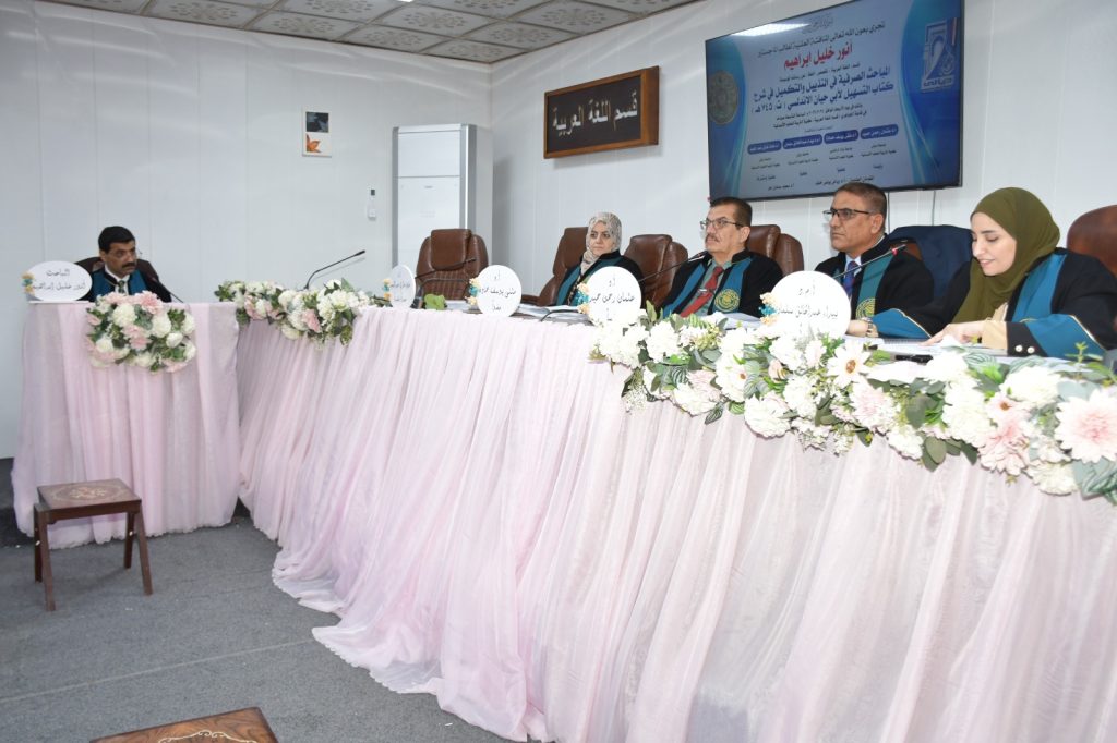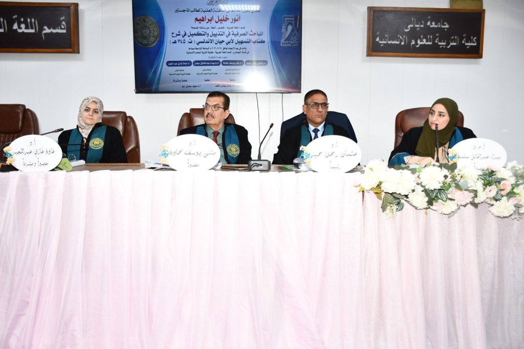 كلية التربية للعلوم الانسانية تناقش المَباحِثُ الصَّرفِيةُ في التَّذييلِ والتَّكميلِ في شَرحِ كِتاب التَّسْهِيل، لأبي حيان الأَندَلُسي (ت 745هـ )