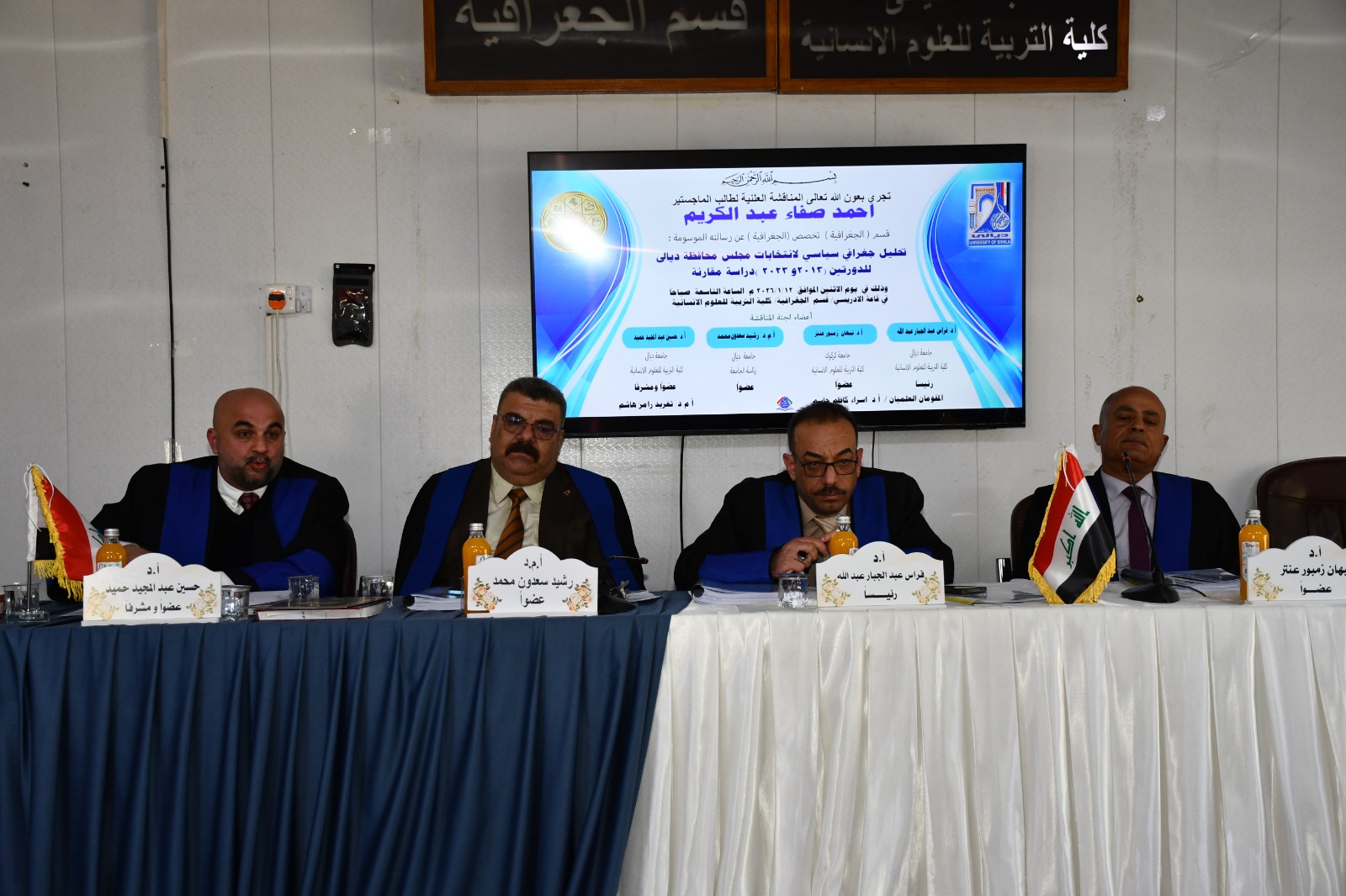 كلية التربية للعلوم الانسانية تناقش تحليل جغرافي سياسي لانتخابات مجلس محافظة ديالى للدورتين 2013و2023دراسة مقارنة