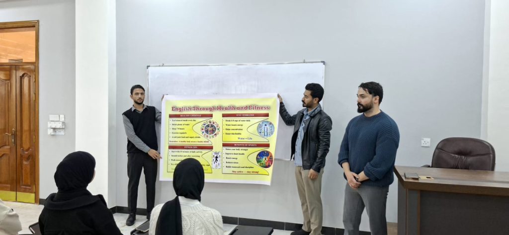 كتب/اعلام الكلية:نظم قسم اللغة الإنكليزية في كلية التربية للعلوم الانسانية بجامعة ديالى نشاطاً لا صفيا بعنوان اللغة الإنكليزية من خلال الصحة واللياقة البدنية . هدف النشاط الذي قدمهُ المدرس المساعد ريبين بهروس امين، إلى تعزيز مهارات الطلاب في اللغة الإنكليزية من خلال مناقشات منظمة ومواد متعلقة بالصحة واللياقة البدنية، وتطوير مفردات الطلاب المتعلقة بالصحة واللياقة البدنية، وتحسين مهارات القراءة والمحادثة والتواصل باللغة الإنجليزية، تعزيز الوعي بممارسات نمط الحياة الصحي، فضلاً عن تشجيع استخدام اللغة الإنجليزية في سياقات الحياة العملية.وحقق هذا النشاط الهدف الرابع من اهداف التنمية المستدامة السبعة عشر وهو التعليم الجيد الذي ينص على ضمان تعليم شامل وعادل ومنصف للجميع، وتعزيز فرص التعلم مدى الحياة .