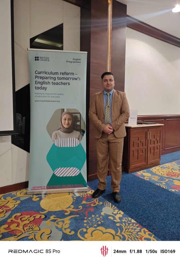 شارك معاون عميد كلية التربية للعلوم الإنسانية في جامعة ديالى للشؤون العلمية الأستاذ المساعد الدكتور غزوان عدنان محمد في البرنامج التدريبي الخاص بتطوير مهارات مدرّسي اللغة الإنكليزية في مجالات التخطيط والتدريب والتقييم، الذي نظمه المجلس الثقافي البريطاني (British Council) بالشراكة مع وزارة التعليم العالي والبحث العلمي، والمقام في محافظة أربيل.
