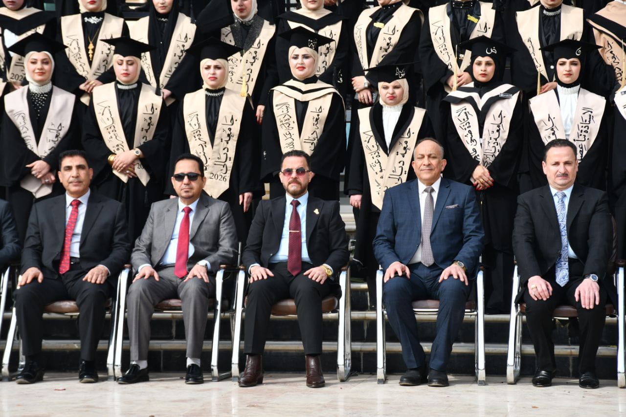 جانب من حفل التخرج الخاص بطلبة قسم التاريخ وقسم اللغة العربية في كلية التربية للعلوم الانسانية بجامعة ديالى للدراستين الصباحية والمسائية للعام الدراسي 2025-2026 .