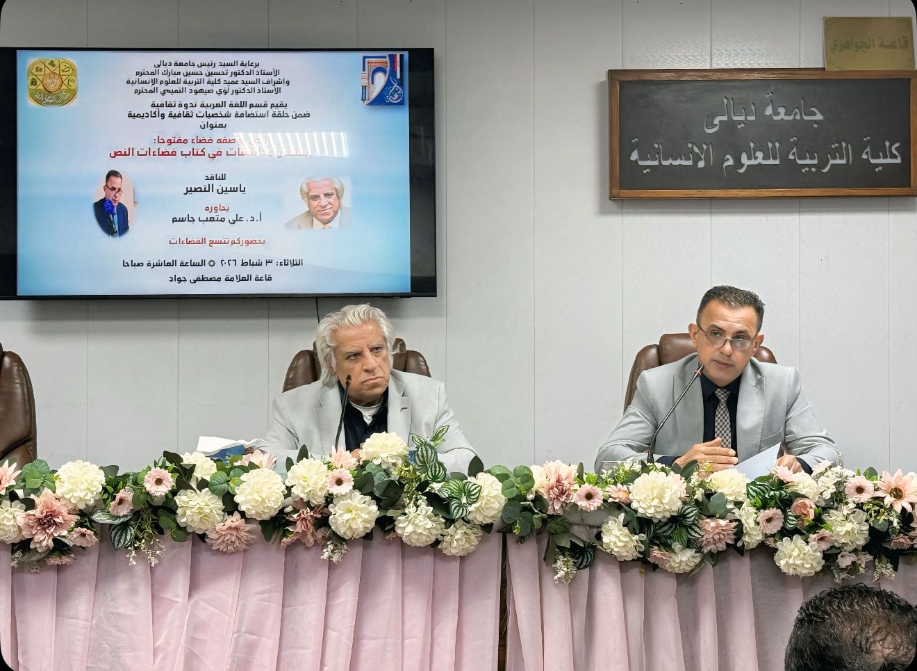 كتب/ إعلام الكلية:برعاية السيد رئيس جامعة ديالى الأستاذ الدكتور تحسين حسين مبارك، وبإشراف السيد عميد كلية التربية للعلوم الإنسانية الأستاذ الدكتور لؤي صيهود التميمي، عقد قسم اللغة العربية في الكلية ندوة ثقافية ضمن سلسلة استضافة الشخصيات الثقافية والأكاديمية، بعنوان “النص …