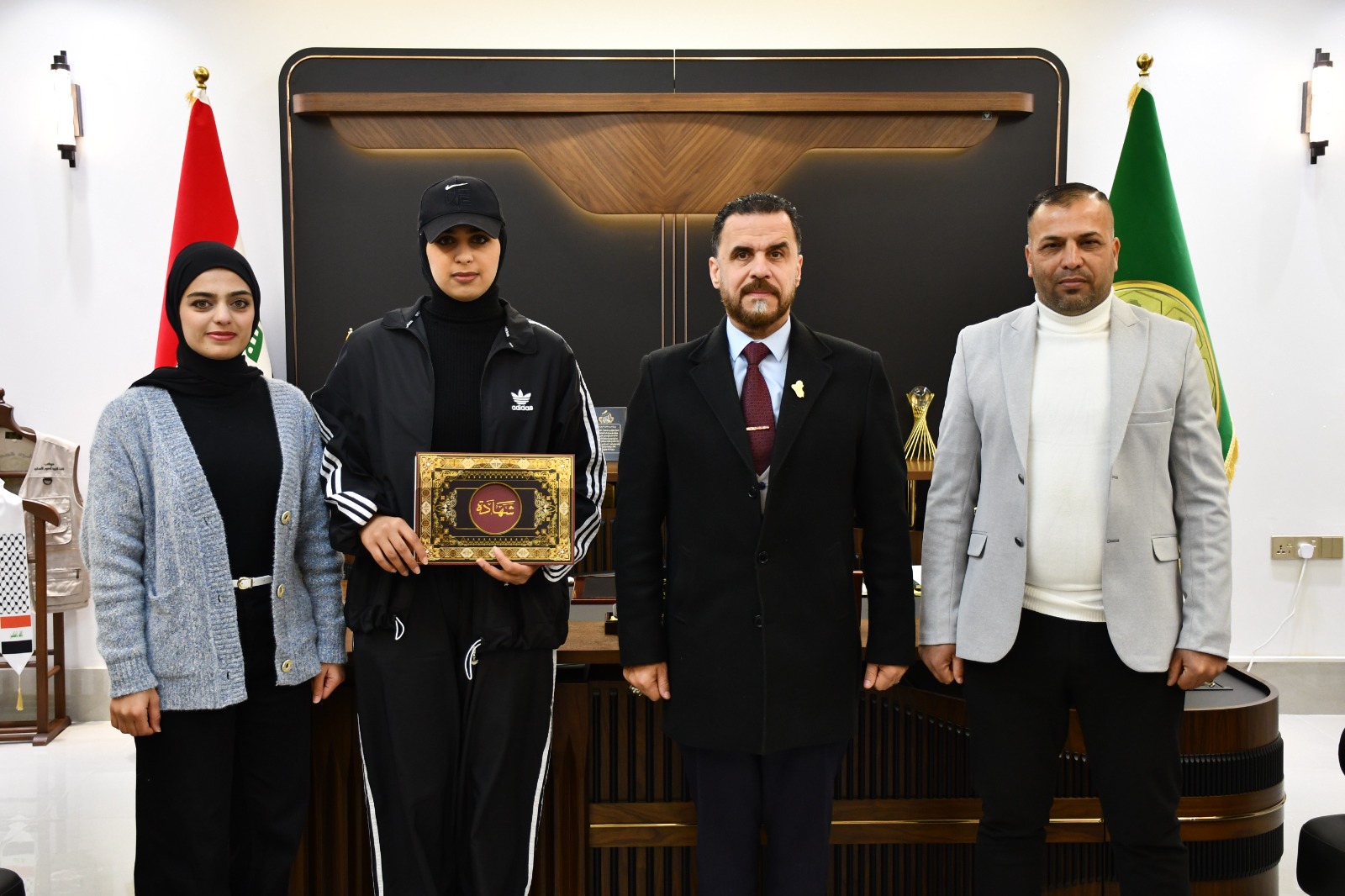 كتب/ إعلام الكلية:كرّم السيد عميد كلية التربية للعلوم الإنسانية بجامعة ديالى الأستاذ الدكتور لؤي صيهود التميمي الطالبة (طيبة رائد مؤيد), من قسم اللغة العربية – المرحلة الثانية، بمنحها شهادة تقديرية تثمينًا لمشاركتها الفاعلة مع منتخب جامعة ديالى للفتيات في بطولتي …