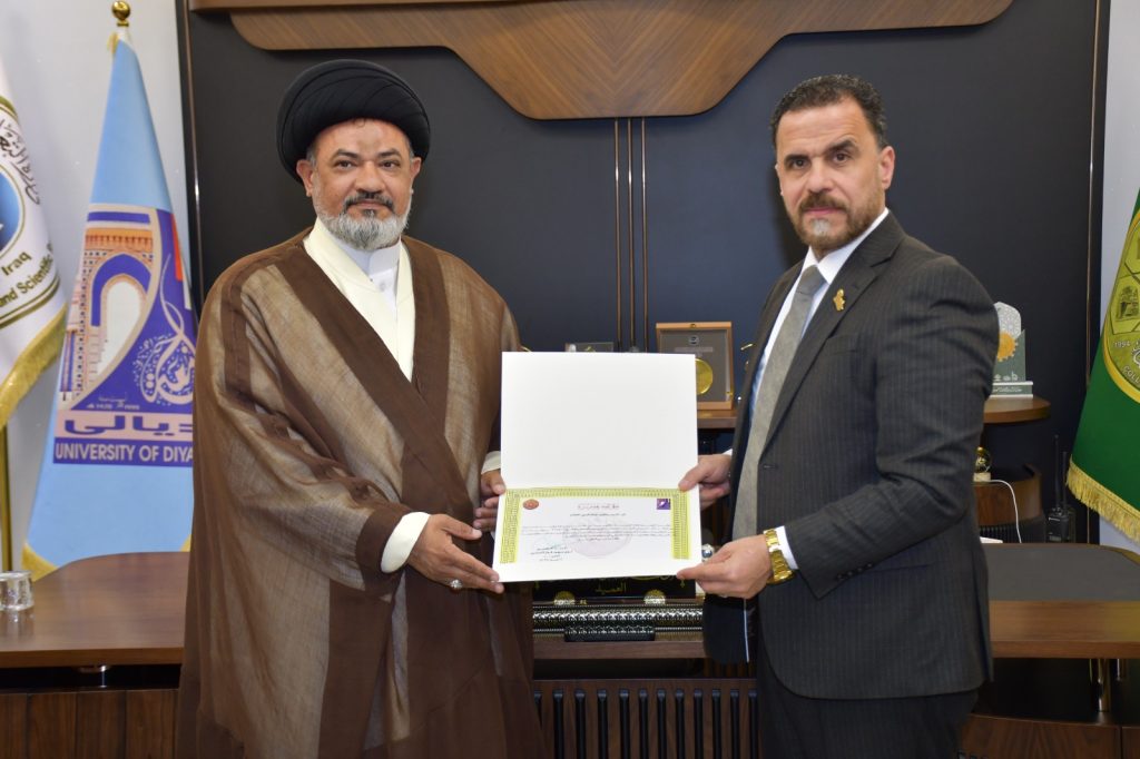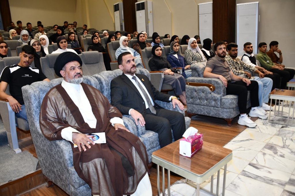 The College of Education for Humanities at Diyala University, in cooperation with the General Secretariat of the Holy Shrine of Imam Hussein/Department of the Holy Quran Center, held a Quranic seminar entitled: “The Cosmic and Intrinsic Verses According to Imam Ja’far al-Sadiq (peace be upon him).” This seminar was part of the activities of the Fifth Annual Quranic Camp, a program of the Quranic Project in Universities.The seminar witnessed a distinguished academic and cultural presence. It was presented by Ali Talib, a legal scholar, and recited verses from the Holy Quran by Ahmed al-Sharikhani. The seminar’s keynote speaker was Dr. Murtadha Jamal al-Din, who explained the concept of the cosmic and intrinsic verses according to Imam Ja’far al-Sadiq (peace be upon him), highlighting the evidence of innate disposition (fitrah) and the evidence of effects (athar) in humankind and all other creatures. He emphasized the importance of contemplation and reflection on the universe as a means to attain true knowledge. The seminar emphasized that rote learning alone is insufficient in the educational process; rather, deep reflection is what distinguishes students and leads them to creativity. It cited the saying of the Imam: “An hour of contemplation is better than seventy years of worship,” explaining that the greatest achievements of scientists, such as Isaac Newton, were the fruit of thought and contemplation.At the conclusion of the seminar, the Dean of the College, Professor Dr. Luay Sayhood Al-Tamimi, honored the organizers by awarding them certificates of appreciation in recognition of their scholarly efforts.This activity comes within the framework of achieving the fourth Sustainable Development Goal: quality education, through promoting critical thinking, developing cognitive awareness, and linking religious sciences with the reflective scientific method.