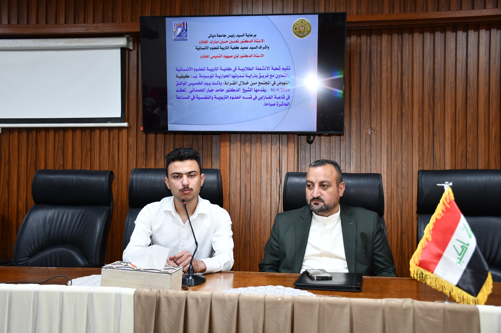 On the occasion of World Heritage Day, the Student Activities Division at the College of Education for Humanities, University of Diyala, in cooperation with the Badhraia Volunteer Team of the Directorate of Youth and Sports in Diyala Governorate, held its cultural festival entitled “Knowledge Gallery,” with the participation of a number of faculty members and students.The festival, which was inaugurated by the Dean of the College, Professor Dr. Luay Sayhood Al-Tamimi, included various activities such as an exhibition of cultural and heritage books, artworks that embodied cultural identity, and cultural presentations that highlighted the importance of preserving and promoting cultural heritage among future generations. The festival witnessed wide interaction from attendees and students, who praised the level of organization and the richness of the activities that reflected the depth of history and heritage.The festival included a panel discussion entitled “Reading: The Foundation of Societal Advancement,” presented by Dr. Sheikh Hamed Jabbar Al-Hamdani. He emphasized that the first commandment given to the Prophet Muhammad (peace and blessings be upon him and his family) was to read, explaining that reading is the cornerstone of building awareness and developing the mind. He pointed out that the mind is the inner voice of humanity, and that its true nourishment lies in reading and knowledge. He cited the opinions of several psychologists who affirm the importance of reading in shaping a person’s character, urging students to commit to daily reading, especially during these crucial academic stages. He also stressed the importance of combining reading and writing, given their significant impact on solidifying information and developing intellectual abilities.This activity contributes to achieving the eleventh Sustainable Development Goal (Sustainable Cities and Communities) by protecting and preserving cultural heritage and strengthening community identity.